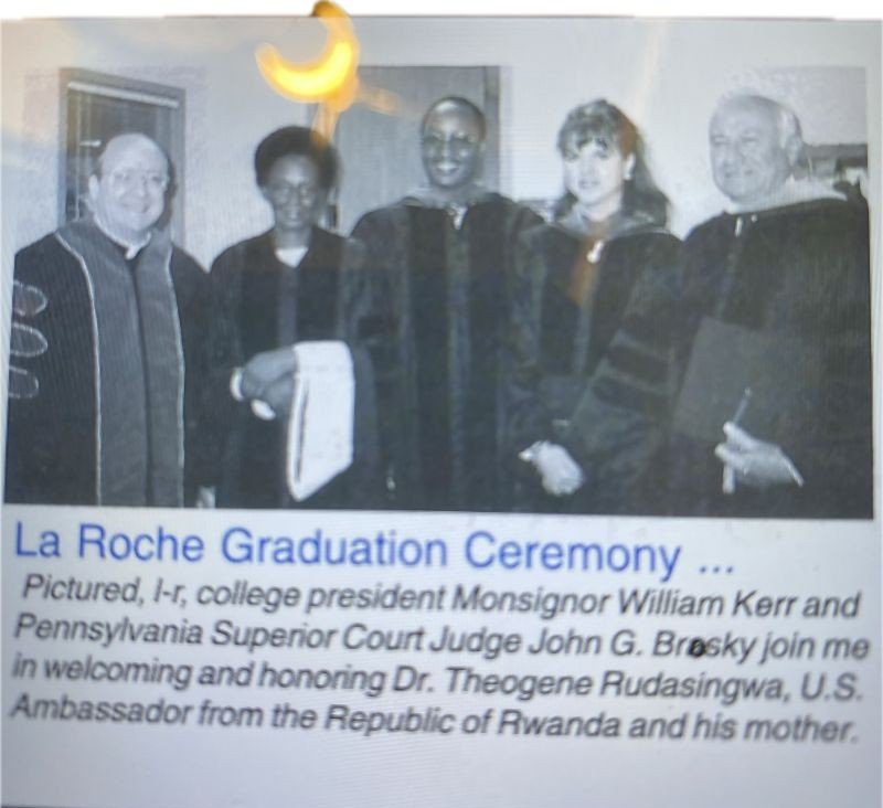 My mother, Colleta Bamususire receiving an Honorary Doctorate from La Roche College, 1997